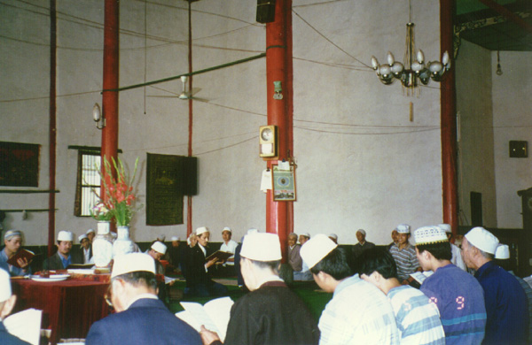 المدرسة الأهلية في جانغ ديان 11/3/1416ﻫ. وقد بحثنا عن فندق آخر من فئة أربعة نجوم، فوجدنا غرفة بوساطة صاحب التاكسي الذي كان على صلة بفندق (GOLDED DRAGON HOTEL) أي التنين الذهبي، والفندق نظيف ومظهره جيد ولكن صيانته ـ كعادة الصينيين ـ رديئة، وإدارتهم بطيئة. زيارة مسجد (SHA LOU): وبهذا المسجد مدرسة أهلية يديرها مع المسجد (داود إبراهيم TIE WEI JIE) وإمام المسجد (إبراهيم بن محمد ZHANJ SAO CHAN) بني المسجد قبل (نسيت تسجيل تاريخ بنائه) والمدرسة قبل عشر سنوات، قام ببنائه داود المذكور، يتسع المسجد لخمسمائة مصل. عدد المصلين في غير أيام الجمع يقارب خمسين، وفي أيام الجمع يمتلئ بالمصلين. عدد الطلاب مائة وسبعون، وعدد المدرسين عشرون. عدد المسلمين في المدينة وضواحيها 100000 مائة ألف نسمة تقريباً، يسكن حول المسجد ألف أسرة. عدد المساجد في المدينة خمسة عشر مسجداً، وفي الضواحي أكثر من ذلك. البحث عن الشيخ محمد أمين: ذهبنا إلى أحد المساجد الكبيرة في المدينة، للبحث عن (الشيخ محمد أمين) الذي أثنى عليه كثير من المسلمين، وكان المسلمون في جميع المساجد يحتفلون بالمولد النبوي، أكلاً وذكراً وصلوات، بحسب ما تعلموه في هذه المناسبة.