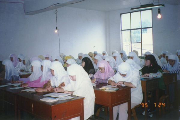 مدرسة نسائية في منطقة لاشاين عدد سكان الصين: بلغ عدد سكان الصين حسب الإحصاء الرسمي في شهر 9/1994م مليار، وثلاث مائة وتسعة ملايين، وثمانمائة وخمسة وتسعين ألف، ومائتين وأربعاً وعشرون نسمة (1.309.895.224). أخلاق الغرب الفاسدة تتغلغل في الصينيين: الصين فيها الملحد والوثني، والوثنيون أصناف كثيرة، والمسيحي، والمسلم، والمسلمون منهم الحنفي، والسلفي، والصوفي، والصوفية طرق متعددة. المسلمون الصينيون ثلاثة أقسام: القسم الأول: يفقه الإسلام ويفقه مهمته، ويحاول نشر الدين بين بني قومه وغيرهم، مع الحذر وخشية الخطر، وهذا القسم قليل. القسم الثاني: الجهال بدينهم حتى من أئمة المساجد، وهذا هو الغالب على المسلمين. القسم الثالث: عندهم علم ولكنهم يحرصون على مصالحهم المادية ومناصبهم الوظيفية، وهم ممكنون من قبل الحكومة في حدود دائرة التخدير لعامة المسلمين بالفتاوى التي ترضي الدولة. واجب المسلمين في خارج الصين لمسلمي الصين: يجب على علماء المسلمينالقادرين والمؤسسات الإسلامية في خارج الصين القيام بواجبهم لمسلمي الصين بالوسائل الآتية: الوسيلة الأولى: تفقيه الطلاب الصينيين الوافدين إلى البلدان الإسلامية لطلب العلم في دينهم، وتربيتهم تربية إسلامية سليمة. الوسيلة الثانية: زيادة المنح الطلابية من جميع مناطق الصين، بحسب كثرة المسلمين فيها وقلتهم، ولا ينبغي العناية بمنطقة دون أخرى. الوسيلة الثالثة: إقامة دورات لأئمة مساجد الصين في البلدان العربية، في قراءة القرآن الكريم قراءة صحيحة وتجويده، وتفسير ما تيسر منه، وفي دراسة بعض الأحكام من القرآن والسنة وكتب الفقه، وفي أصول الدعوة وأساليبها، حتى يعودوا إلى بلادهم قادرين على نقل ما تعلموه إلى المسلمين في بلدانهم، مع العلم أن أئمة المساجد هم رواد المسلمين في كل أنحاء الصين. وقد قام بذلك بعض المسئولين في الأزهر، ونفع الله به الذين اشتركوا من الأئمة في تلك الدورات، في القاهرة. الوسيلة الرابعة: مساعدة العلماء الصينيين ـ وهم قلة ـ بكتب ومراجع عربية وإنجليزية تعينهم على ترجمة معاني القرآن والسنة، ومبادئ الإسلام وأحكامه، في كتيبات ونشرات باللغة الصينية، لتصل إلى القراء من المسلمين وغيرهم، لإقامة الحجة وبلوغ الدعوة. الوسيلة الخامسة: اختيار الطلاب البارزين من الصينيين الموجودين في الجامعة الإسلامية، والعناية بهم بإقامة دورات أثناء السنة الدراسية، تمكنهم من القيام بالدعوة بين الحجاج الصينيين في مواسم الحج في الحرمين الشريفين، وهي فرصة تجعل الحاج يعود إلى وطنه وقد تحقق فيه قول الله تعالى: ﴿ وَأَذِّنْ فِي النَّاسِ بِالْحَجِّ يَأْتُوكَ رِجَالاً وَعَلَى كُلِّ ضَامِرٍ يَأْتِينَ مِنْ كُلِّ فَجٍّ عَمِيقٍ (27) لِيَشْهَدُوا مَنَافِعَ لَهُمْ وَيَذْكُرُوا اسْمَ اللَّهِ فِي أَيَّامٍ مَعْلُومَاتٍ ﴾[الآية 27 ـ 28 الحج]...