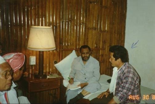 (مدينة مراوي) الأربعاء: 29/1/1410هـ ـ 30/8/1989م. ولد في 24 ديسمبر سنة 1940م. ديانته قبل الإسلام: اعتنق ثلاثة أديان قبل الإسلام. فلبين كاثوليك، وهي ديانته الأصلية. ثم الرومان كاثوليك عندما كان عمره (17 سنة). ثم بايبل بابس-فرع من البروتستانتية. تخصصه: خريج تجارة. سبب انتقاله من دين إلى آخر. قلت له: لماذا انتقل من فرع إلى آخر؟ قال: إنه كان مساعداً لقسيس في الفرع الأول، ثم درس في الجان في مدرسة تابعة للكاثوليك، فعمل في نفس الكنيسة التابعة لها. ثم انتقل إلى داباو للدراسة في الكلية، وكان أخو زوجته محاضراً في كنيسة تابعة للفرع الثالث، فرأى عندهم أخوة قوية ورابطة طيبة، ولا يحبون الرقص والقمار ومرافقة البنات، فانتقل إلى هذا الفرع. وفي (فلبين كاثوليك) لا بد أن يعترف المرء بالذنب عند القسيس ليغفره له، والقسيس قادر على غفران الذنب لمن يعترف عنده به. وعندما كان في المرحلة الثانوية لم يكن يعتقد صحة ذلك. كما أن في (الرومان كاثوليك) تعليمات لا توجد في الكتاب المقدس، وإنما يأتون بذلك من عند أنفسهم. نفوره من الإسلام وسببه. وسألته: هل دعاه أحد إلى الإسلام أو شرح له شيئاً منه، قبل أن يدخل في الإسلام؟. قال: إنه عندما كان في المرحلة المتوسطة والمرحلة الثانوية، كان يعرف أنه يوجد مسلمون، وكان بجوار المسجد، ولكن لم يشرح له أحد الإسلام، وكان القسيس يذم الإسلام وينفر الناس منه، وكان هو ينفر من المسلمين، لأنه كان من شدة هجوم القسيس على الإسلام، ينفر من المسلمين ويخاف من الاقتراب منهم. رحلته من المسيحية إلى الإسلام. قلت: متى بدأ يفكر في الإسلام؟ قال: إنه في سنة 1982م سكن في مراوي في منطقة باريو سلام (منطقة قريبة من الفندق الذي نزلنا به) وكان له ولزوجته دكان، وبقربه مسجد يزعجهم الأذان الذي يرتفع منه، وبخاصة أذان الفجر. فسأل الطلاب المسلمين عن معاني الأذان، فشرحوا له ذلك فأعجبته تلك المعاني. فبدأ يسأل عن الإسلام فشرح له ما تيسر منه. ثم سأل عن كتاب يتحدث عن الإسلام، فوجد كتاباً عنوانه عيسى نبي الإسلام، فأغاظه ذلك وقال: كيف يكون عيسى عندنا إله وعند المسلمين نبي؟ فبدأ يقرأ الكتاب، وفيه كلام من الإنجيل، وكلام من دائرة المعارف البريطانية، فراجع ذلك في الإنجيل وفي دائرة المعارف البريطانية، فوجد أن الكلام الذي أورده المؤلف في الكتاب ونسبه إلى الإنجيل ودائرة المعارف صحيح. ثم أخذ كتاباً بعنوان: محمد في الإنجيل، ومؤلفه يسمى داود كلداني، وهو ذو منصب كبير في الفاتيكان سابقاً، ودخل في الإسلام، فقرأ ذلك الكتاب وأثر فيه. فاتصل الأخ محمد بعالم مسلم يسمى حاج عبد الله، وطلب منه أن يعلمه الوضوء، فقال له: لعلك تمزح؟ فقال له: لا بل أريد أن أتعلم فعلاً. فعلمه الوضوء وصار يصلي بجانبه، وبدأ يتعلم الفاتحة، وكان قد نطق الشهادتين سنة 1983م على يد نائب رئيس الجامعة (جامعة مندناو) وهو الآن نائب المحافظ، ويسمى سعد الدين علوية، وهو محام ولم يعطه شهادة بإسلامه، كما يفعلون ذلك في الكنيسة، فذهب إلى محمد قاسم ثاوسان في مركز الشباب المسلم، وأعلن الشهادة وأعطي وثيقة بإسلامه، وأعطوه ترجمة معاني القرآن الكريم وكتباً إسلامية أخرى، ووعدوه أن يساعدوه، فاستمروا يزورونه. أسباب عدم اطمئنانه إلى المسيحية قبل الإسلام. قلت له: هل كنت مطمئناً إلى الديانة المسيحية؟ قال: لم يكن مطمئناً إليها بسبب ما فيها من التثليث، ولم يجد من يشرح له ما عنده في ذلك من إشكال ويقنعه، وكان إذا سأل القسيس عنها يقول له: هذه من الأسرار التي لا يسأل عنها! وكذلك لم يقتنع بألوهية عيسى، وعندما قرأ القرآن عرف أن الله واحد، وبعد إسلامه عرف أن الإنجيل يقول: إن الله واحد، وهو إنجيل بروتستانت، وهذا الإنجيل طبعه المسيحيون غيره وسموه أنترناشيونال.